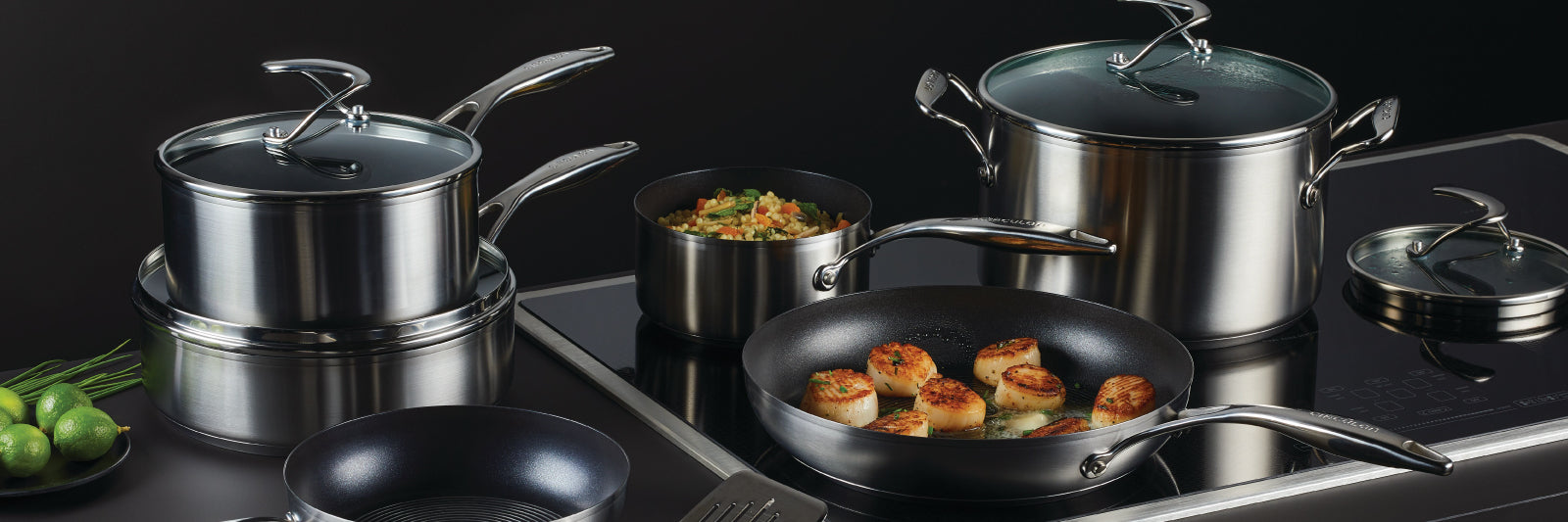 Choose from tri-ply clad stainless steel C-Series, with polished mirror-finish & flush rivets; all-hob suitable & especially optimised for induction. Or our S Series with encapsulated base & brushed satin finish.