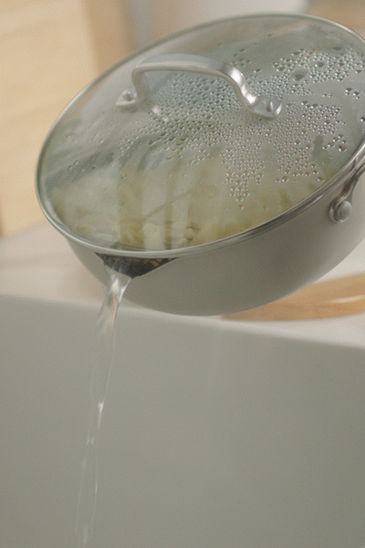 - Versatile performance: sears, sautés, boils, fries, steams, strains, and bakes.