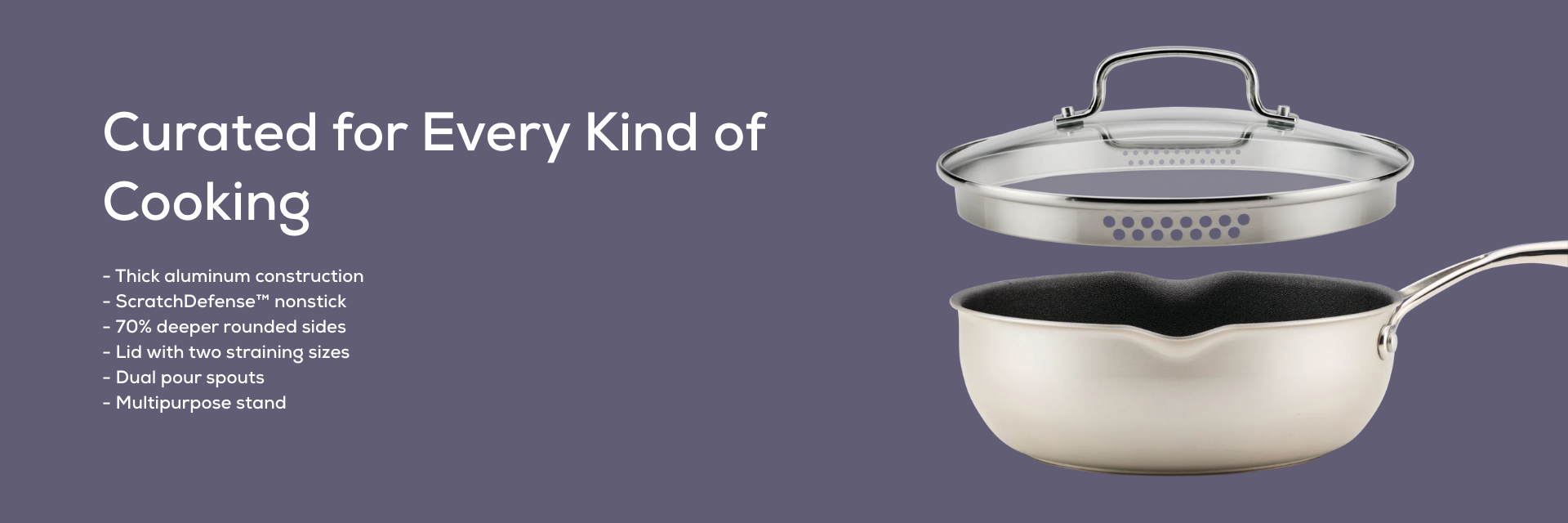 Meet the Circulon Infinity Pan, the one pan that truly does it all. Crafted with our ScratchDefense™ technology, it replaces a cluttered cabinet of cookware with a single, ultra-durable nonstick workhorse built to sear, steam, sauté, fry, bake, and go wherever your cooking takes you.