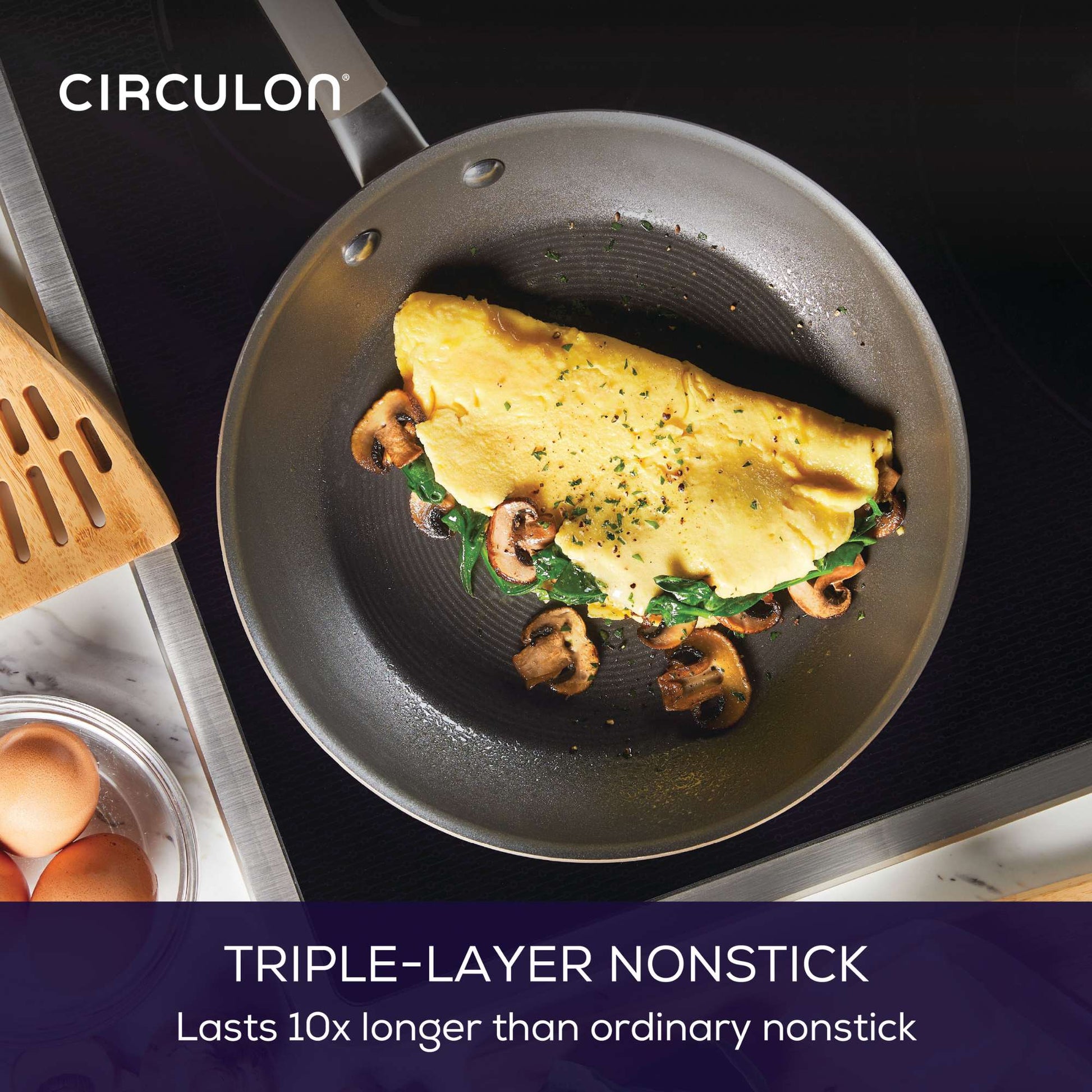 - Triple-layer nonstick coating for easy release of food - lasts 10x longer than other nonstick