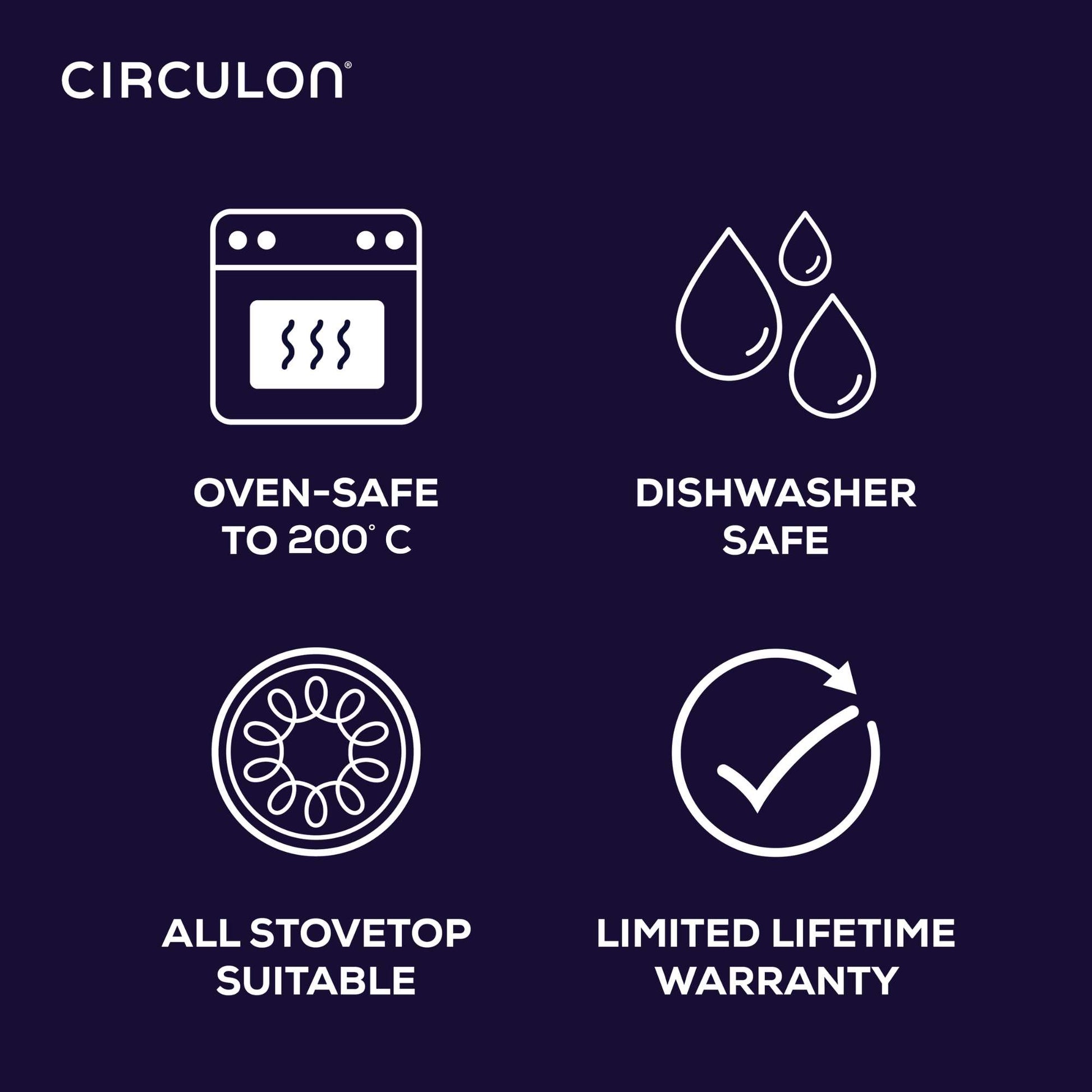 - Hard-anodised body is twice as hard as stainless steel and oven safe up to 200ºC.