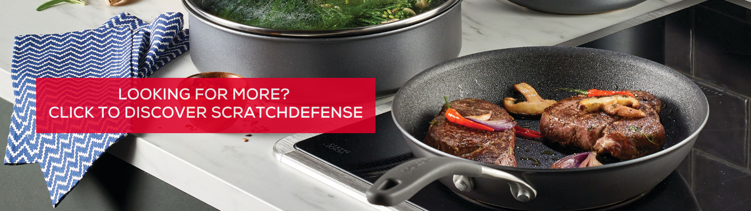 From the inventors of hard-anodised nonstick cookware comes Circulon ScratchDefense™. Open up a new dimension in scratch resistance and unbeatable nonstick performance and longevity with ground-breaking ScratchDefense™ nonstick technology that applies aerospace-grade durability to eliminate scratching, sticking, and flaking for our most advanced nonstick yet.